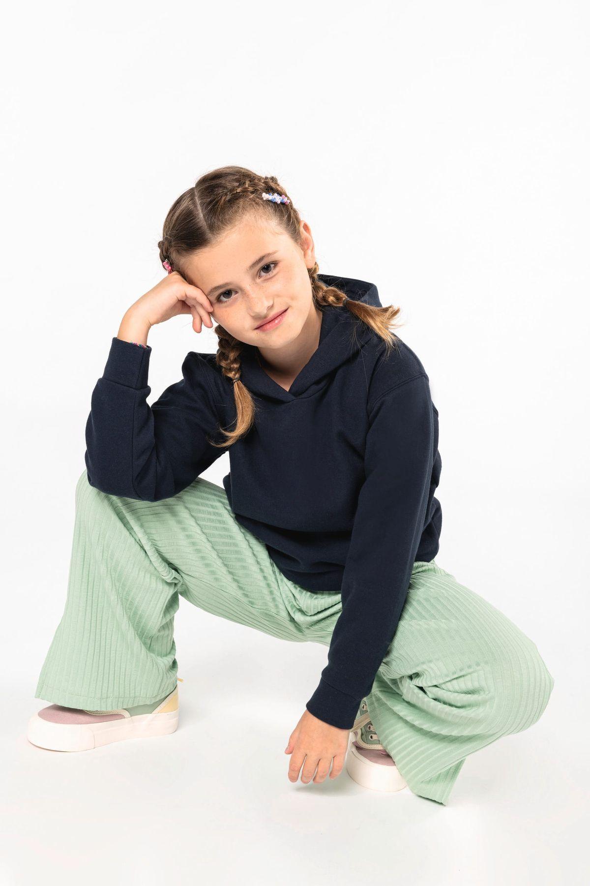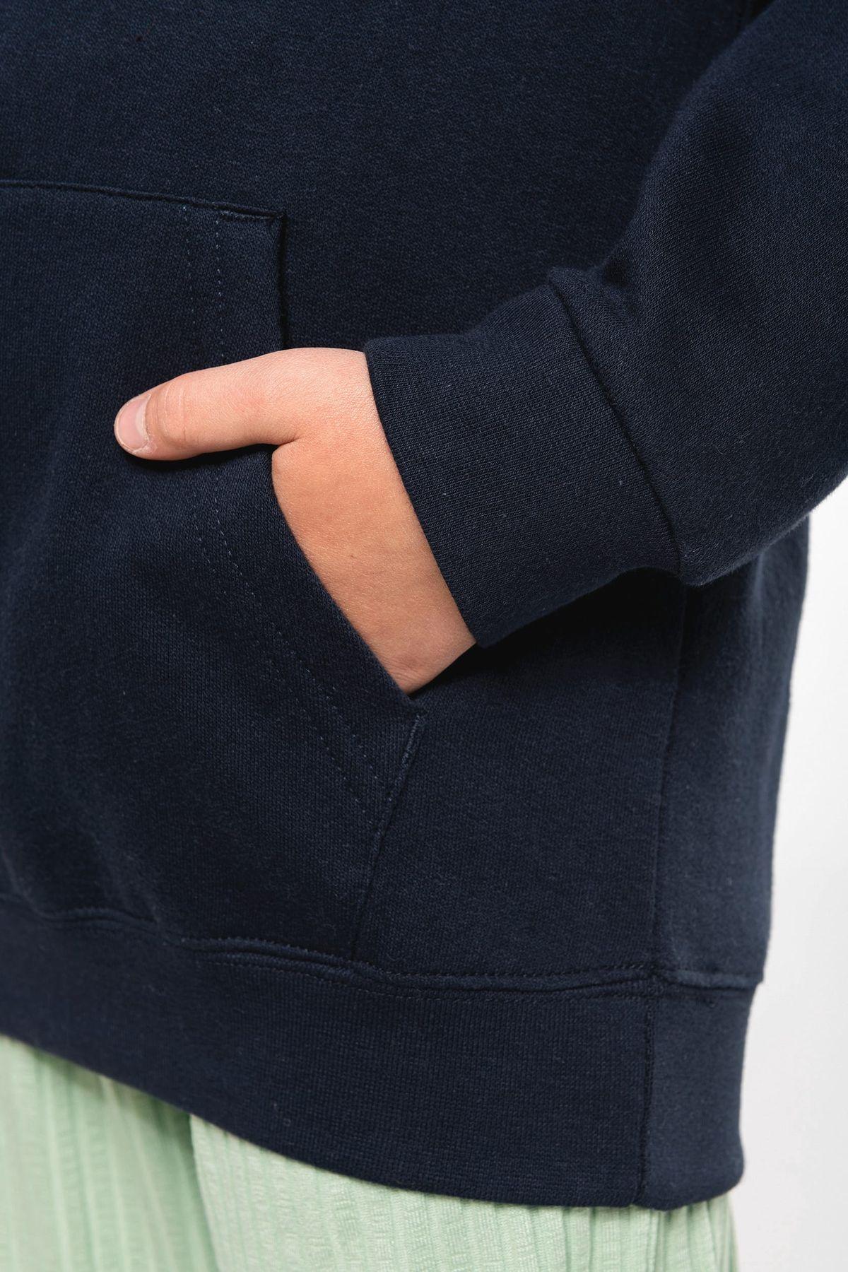 80% coton / 20% polyester. Coton peigné. Molleton gratté. Manches montées. Capuche doublée. Poches Kangourou. Finition bord-côte bas de manches et de vêtement.