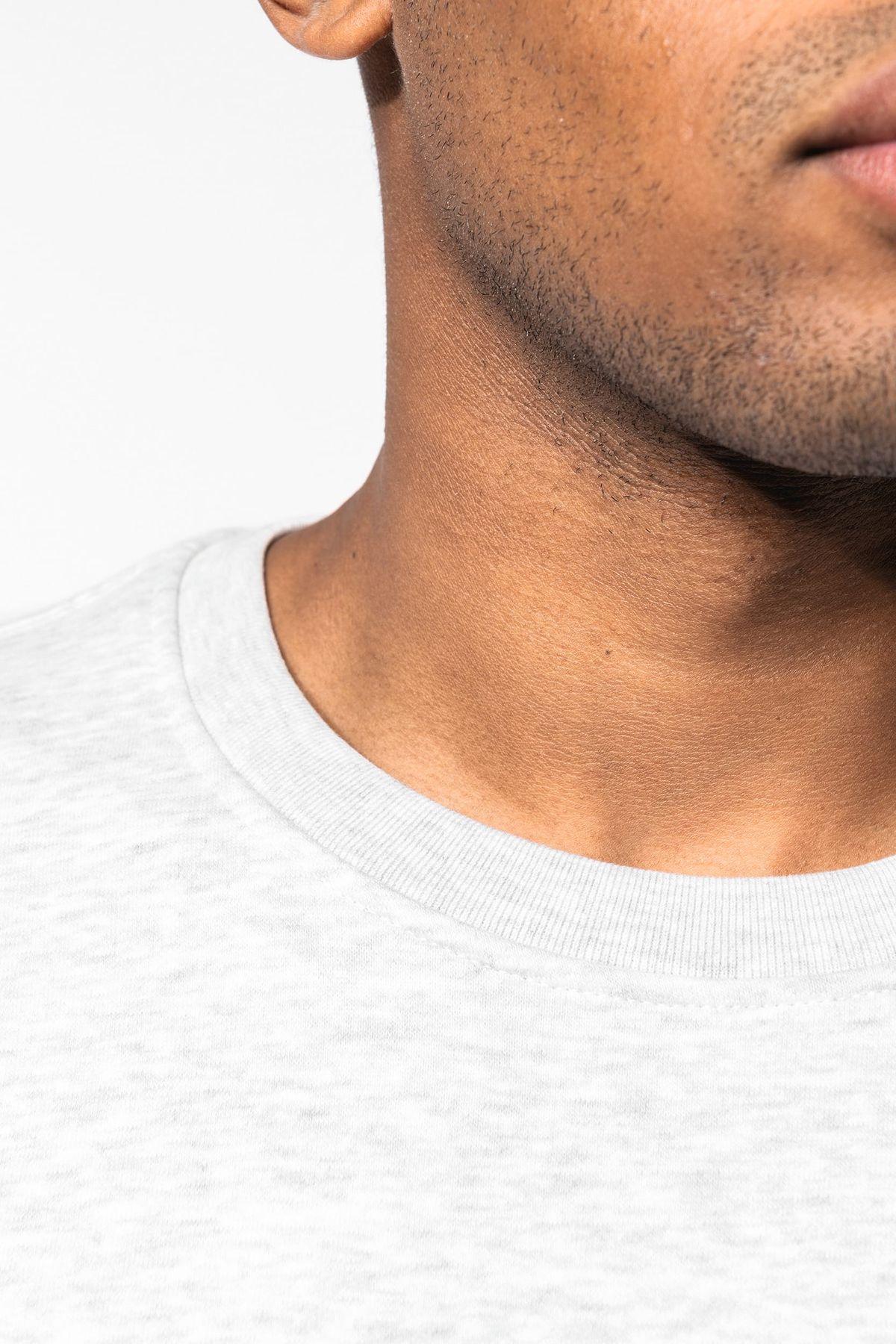 80% coton / 20% polyester (Ash Heather : 79% coton / 20% polyester / 1% viscose). Surface extérieure 100% coton. Traitement LSF (Low Shrinkage Fleece : molleton prérétréci). Molleton gratté 3 fils en coton peigné. Manches montées. Bande de propreté contrastée à l’encolure (Navy pour le coloris Oxford Grey et Ash Heather ; Oxford Grey pour tous les autres coloris). Finition bord-côte poignets et de bas de vêtement.