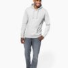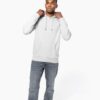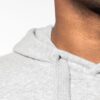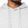 80% coton / 20% polyester (Ash Heather : 79% coton / 20% polyester / 1% viscose). Surface extérieure 100% coton. Traitement LSF (Low Shrinkage Fleece : molleton prérétréci). Molleton gratté 3 fils en coton peigné. Manches montées. Bande de propreté contrastée à l’encolure (Navy pour le coloris Oxford Grey et Ash Heather ; Oxford Grey pour tous les autres coloris). Capuche doublée en nid d’abeille avec cordon de serrage. Poches kangourou. Finition bord-côte poignets et de bas de vêtement.