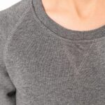 80% coton biologique / 20% polyester. Molleton non gratté (French Terry). LST (Low Shrinkage Terry). Bord-côte col, poignets et bas de vêtement. Bande de propreté chevron intérieur col et application en V à l’encolure. Pas d’étiquette de marque au col, uniquement une puce de taille pour faciliter la personnalisation.