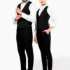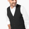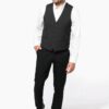 64% polyester / 34% viscose / 2% élasthanne. Coupe ajustée. Doublure 100% polyester taffetas. Fermeture devant 5 boutons. 2 petites poches passepoilées avant. 2 fentes côtés. Dos en doublure. Patte de réglage au dos avec boucle métal.