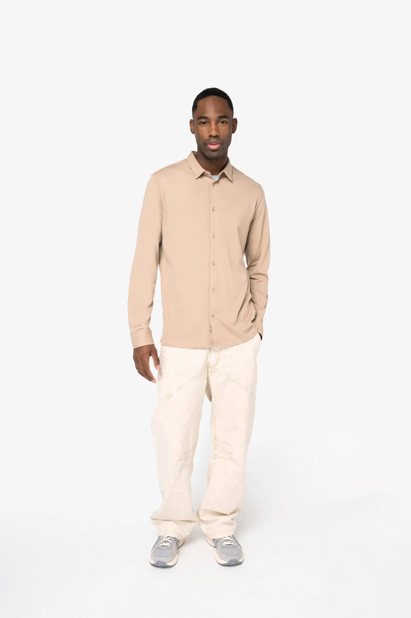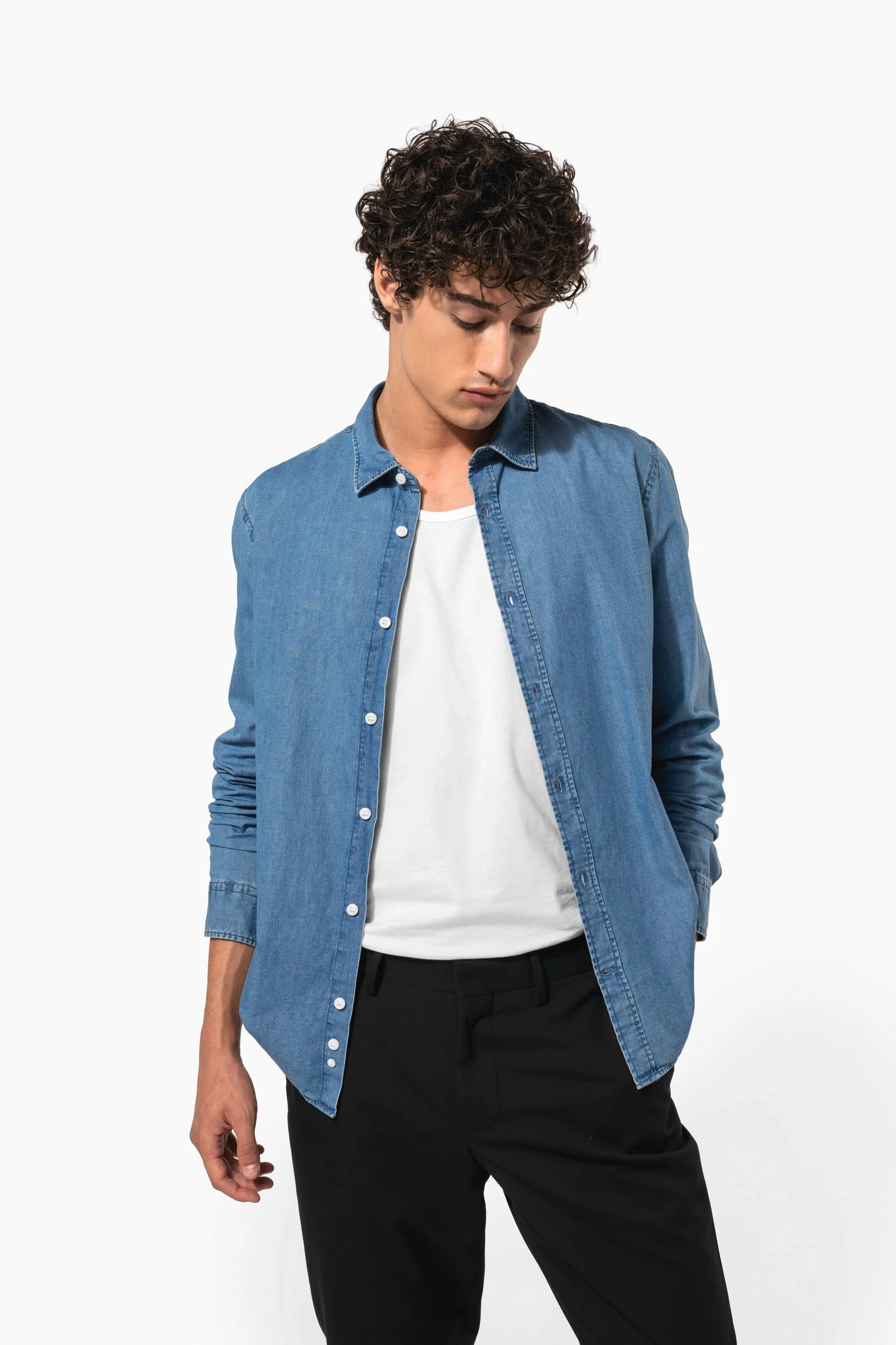 100% coton. Toile légère effet denim. Matière souple et confortable. Coupe droite. Col avec bande fantaisie intérieure. Boutons contrastés. Poignets réglables. Ce produit a subi un traitement spécial et présente un aspect volontairement vieilli. Ce procédé de fabrication implique des variations de couleurs d’un produit à l’autre et rend chaque pièce unique.