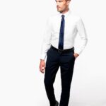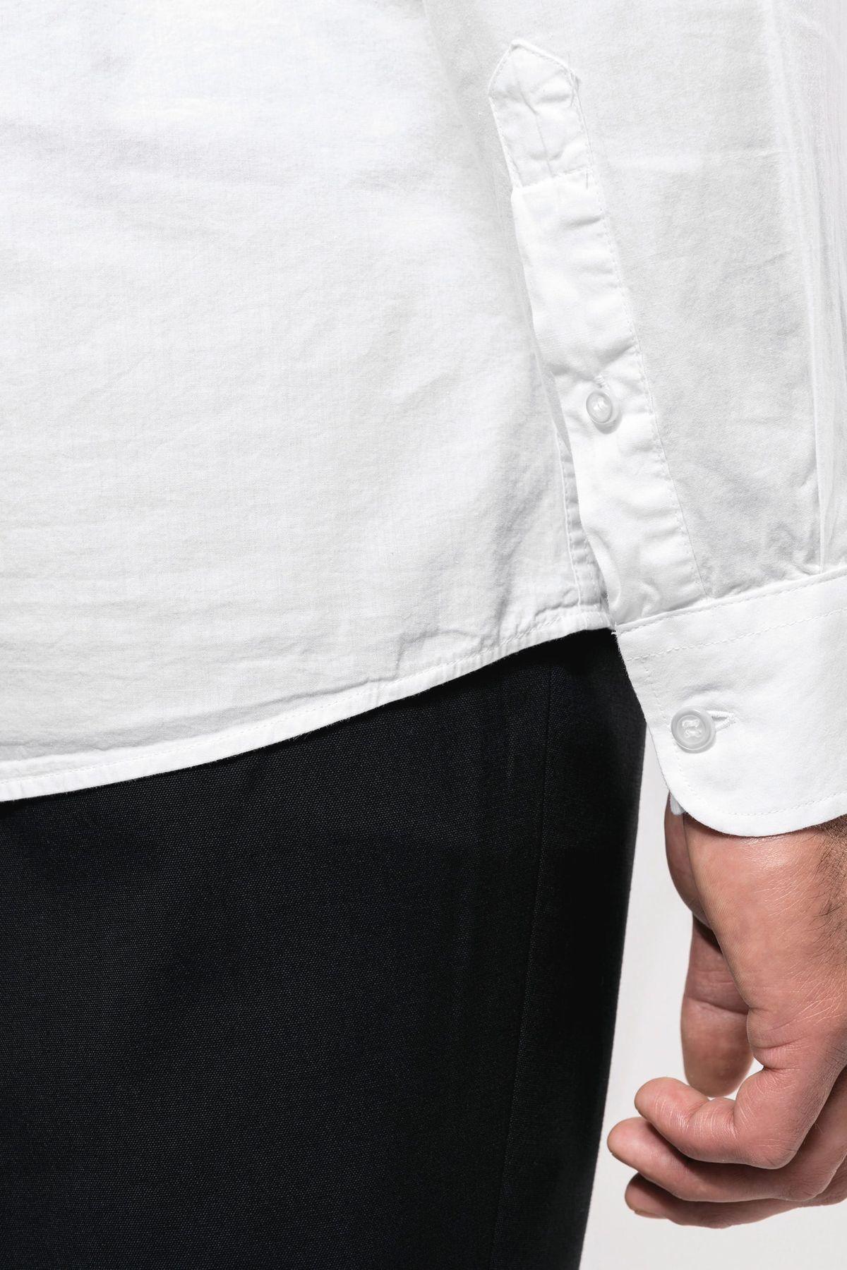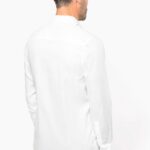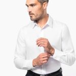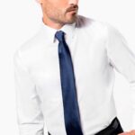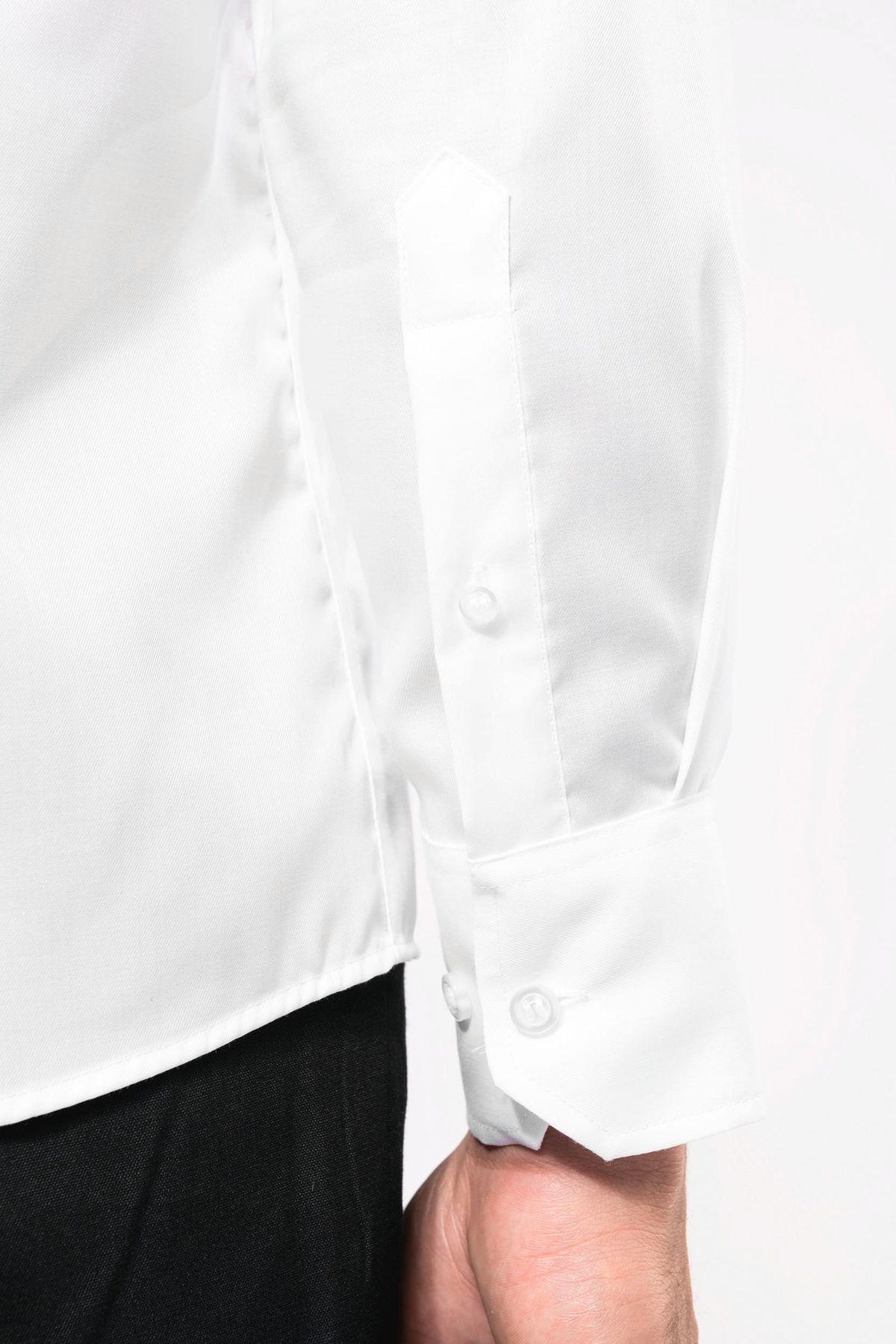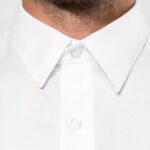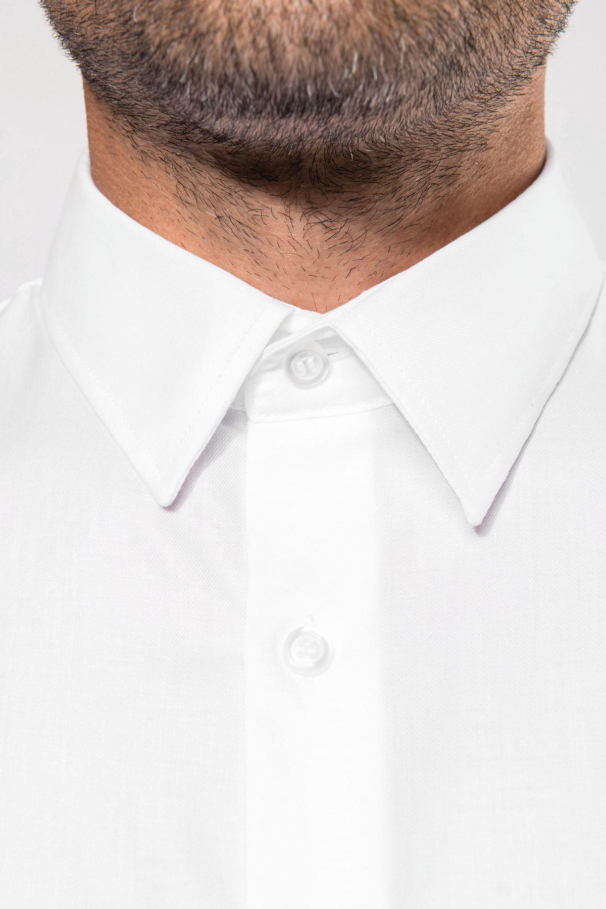 100% coton micro sergé. Tissu nouvelle technologie sans repassage. Col non boutonné. Boutons ton sur ton. Empiècement dos double. Finitions coutures rabattues. Poignet réglable à angles abattus avec patte capucin boutonnée. 2 boutons de rappel. Bas arrondi.