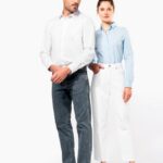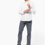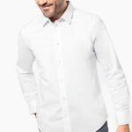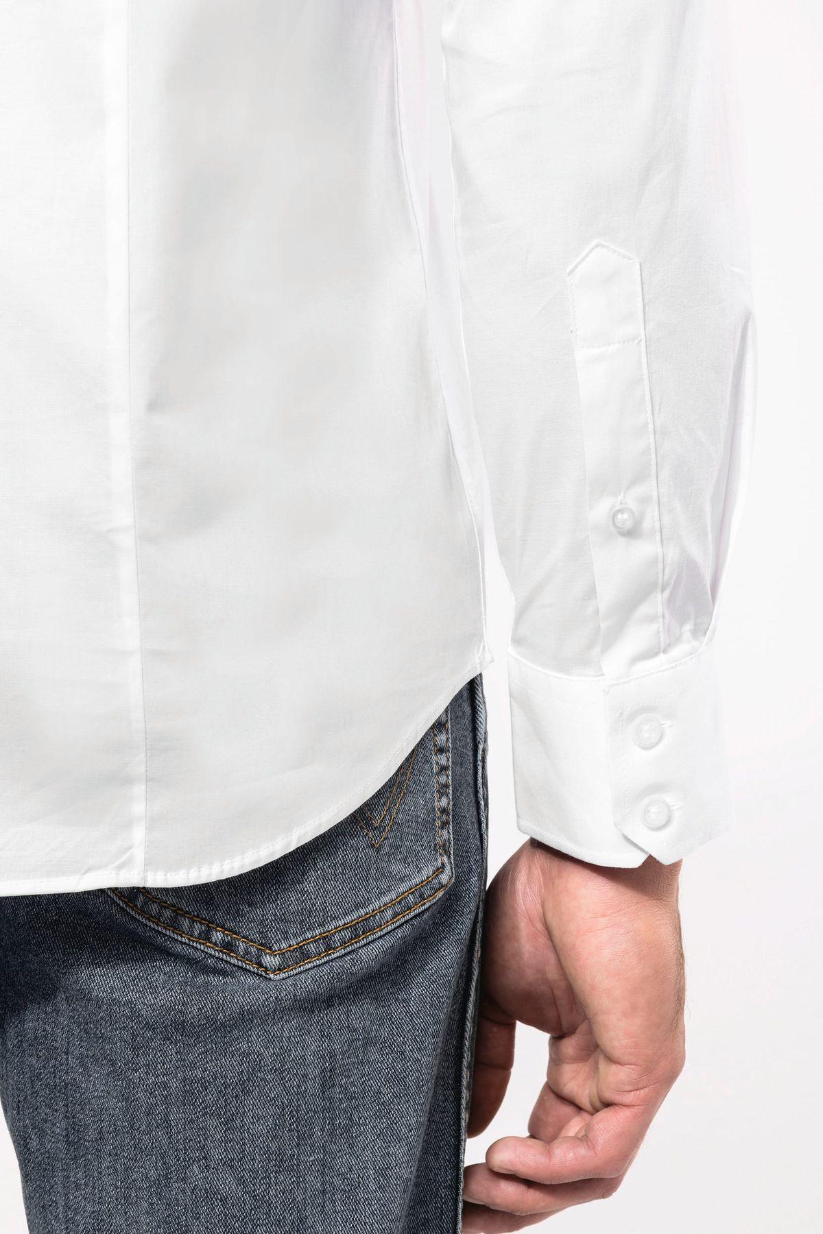 97% coton / 3% élasthanne. Aisance et ajustement idéal de par son côté stretch. Pointe de col baleinée. Boutons ton sur ton. Empiècement dos double. Pinces taille dos. Finition coutures rabattues. Poignet à angles abattus à 2 boutons avec patte de manche capucin boutonnée. 2 boutons de rappel. Bas arrondi.