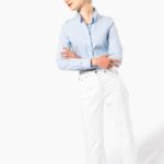 97% coton / 3% élasthanne. Aisance et ajustement idéal de par son côté stretch. Col non boutonné. Boutons ton sur ton. Pinces à la taille dos et devant. Poignet réglable à angles abattus avec patte de manche indéchirable. 1 bouton de rappel. Bas arrondi.