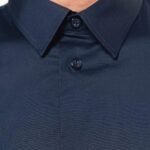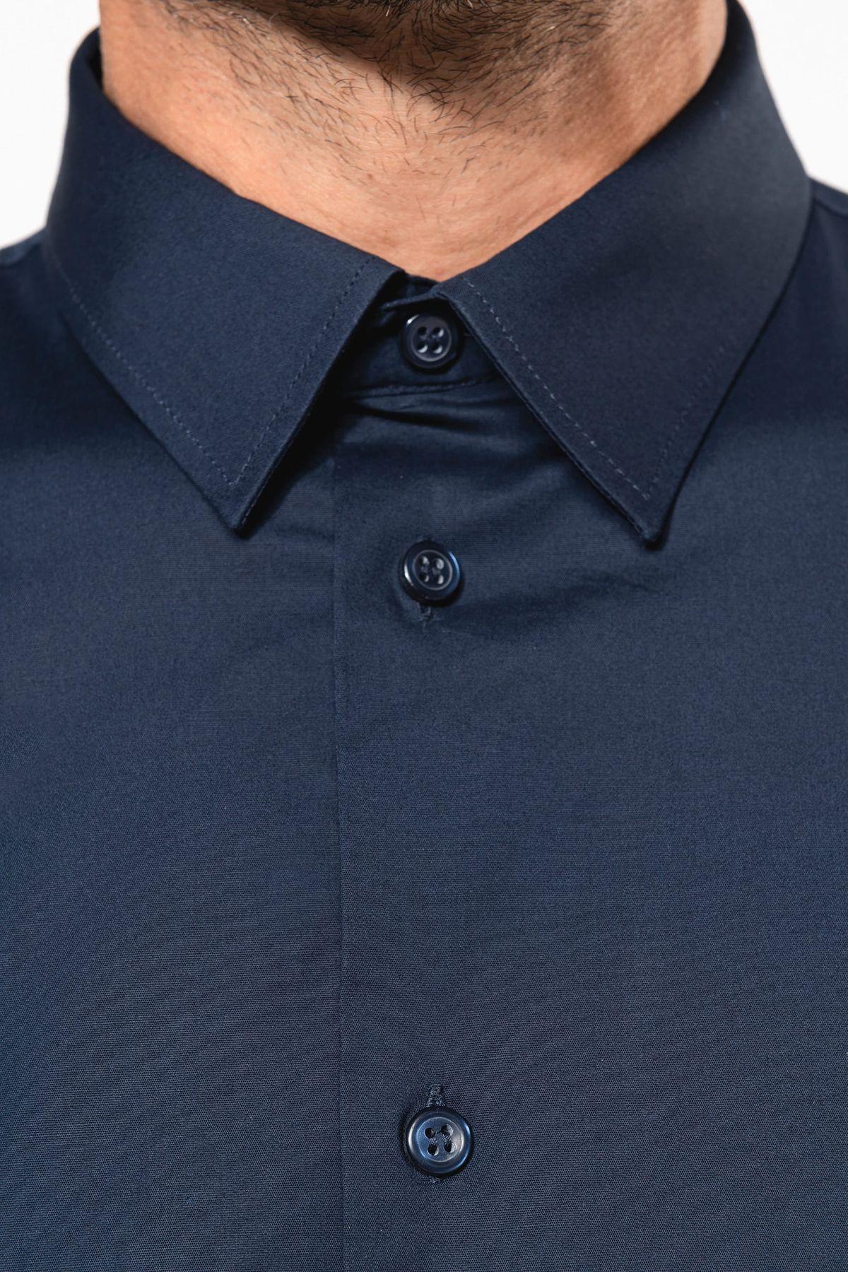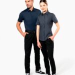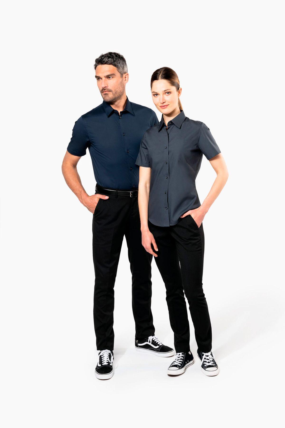 97% coton / 3% élasthanne. Aisance et ajustement idéal de par son côté stretch. Pointe de col baleinée. Boutons ton sur ton. Empiècement dos double. Pinces taille dos. Finition coutures rabattues. Ourlet bas de manche double rempli. 1 bouton de rappel. Bas arrondi.