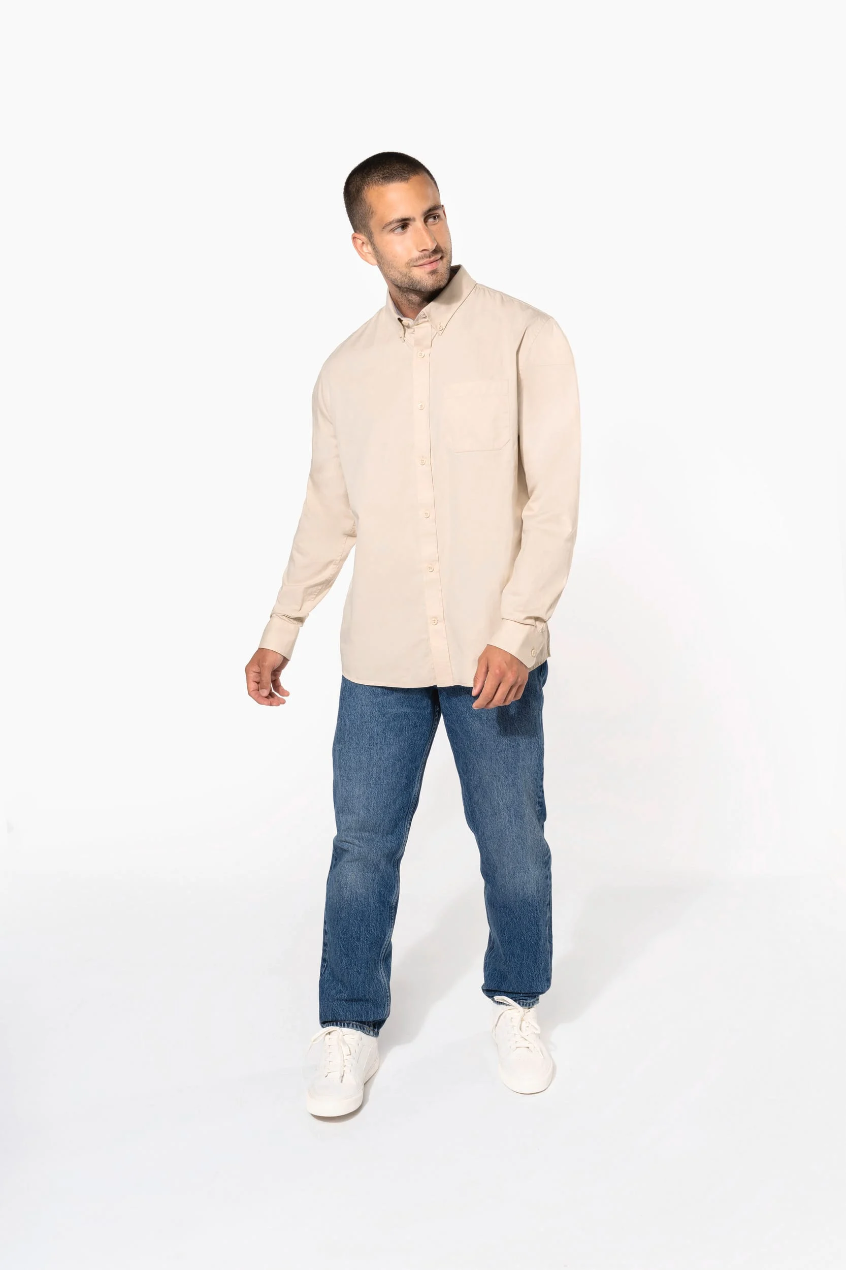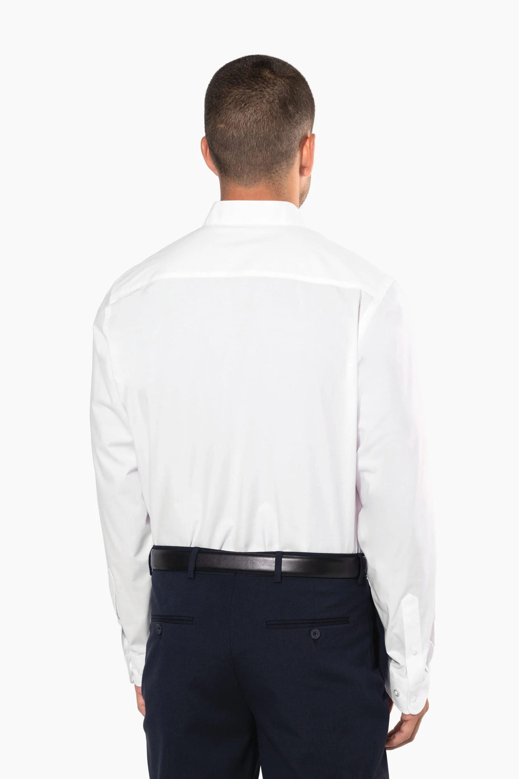 65% polyester / 35% coton. Tissu popeline. Entretien facile. Pointe de col baleinée. Boutons ton sur ton. Poche côté gauche poitrine à angles arrondis. Empiècement dos double. Finition coutures rabattues. Poignet réglable à angles arrondis avec patte de manche capucin boutonnée. 2 boutons de rappel.