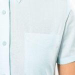65% polyester / 35% coton. Tissu popeline. Entretien facile. Col non boutonné. Boutons ton sur ton. Poche poitrine côté gauche en V. 1 bouton de rappel. Bas arrondi.