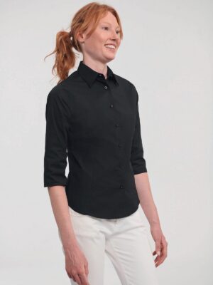 65% polyester / 35% coton. Tissu popeline. Entretien facile. Col non boutonné. Boutons ton sur ton. Poche poitrine côté gauche en V. Poignet réglable à angles arrondis avec patte de manche indéchirable. 1 bouton de rappel. Bas arrondi.