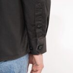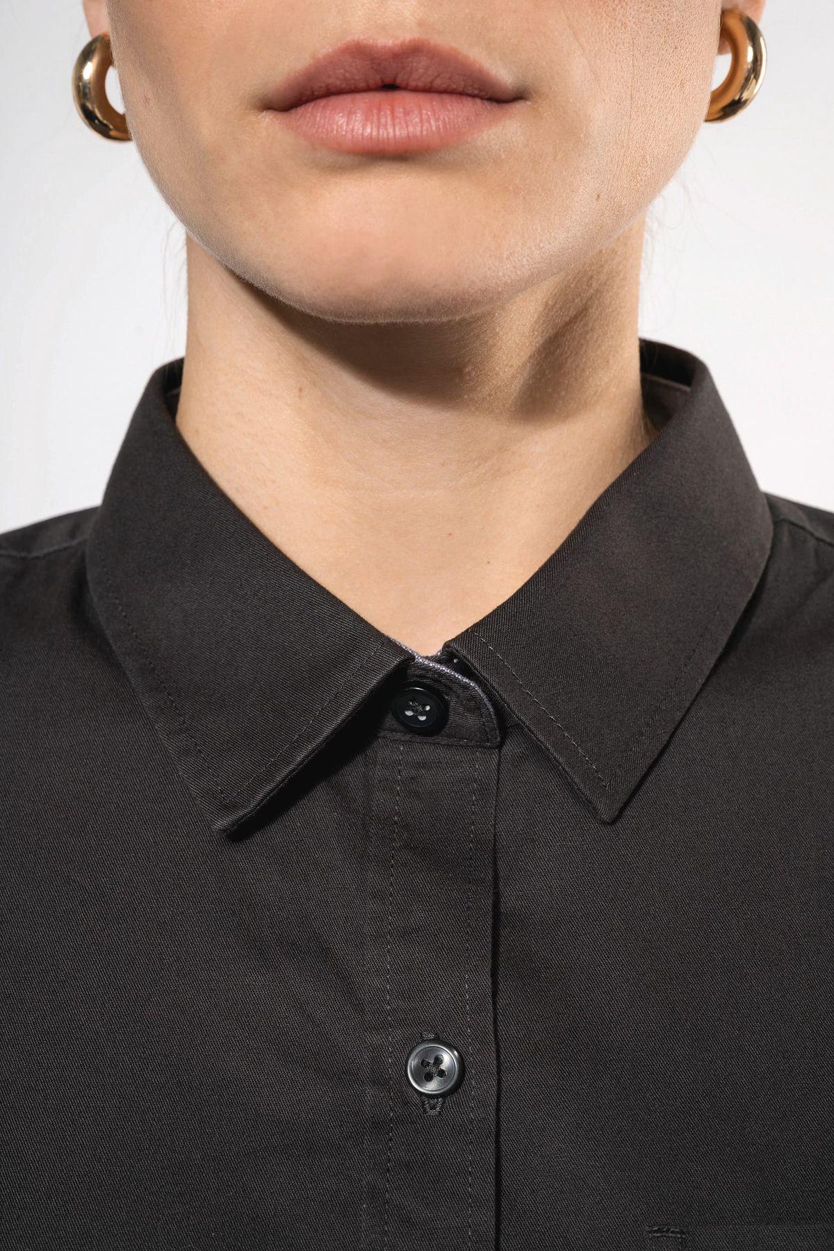 100% coton. Tissu sergé toucher peau de pêche. Boutons ton sur ton. Poche poitrine côté coeur. Intérieur pied de col et poignets contrastés en couleur Oxford silver. Dos avec 1 pli d’aisance et empiècement doublé. Finition coutures rabattues. Poignet réglable avec patte de manche capucin boutonnée. Bouton de rappel.