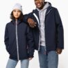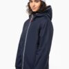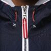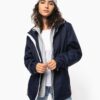 100% polyamide. Respirante 5000 g/m²/24h. Imperméable 3000 mm. Coutures thermosoudées étanches. Fermeture zippée. 2 poches zippées devant. 1 poche intérieure. Doublure polyester contrastée. Capuche doublée filet et réglable. Zip de personnalisation bas et poitrine.