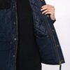 Extérieur : 100% polyester pongé. Intérieur : 100% polyester taffetas. Fermeture zippée cachée par une patte pressionnée. 2 double poches devant avec rabat pressionné. 1 poche intérieure. Empiècement pressionné sur l’épaule. Finitions bas de vêtement, intérieur col et dessous du rabat de poche en velours côtelé. 2 fentes d’aisance pressionnées au bas du dos.
