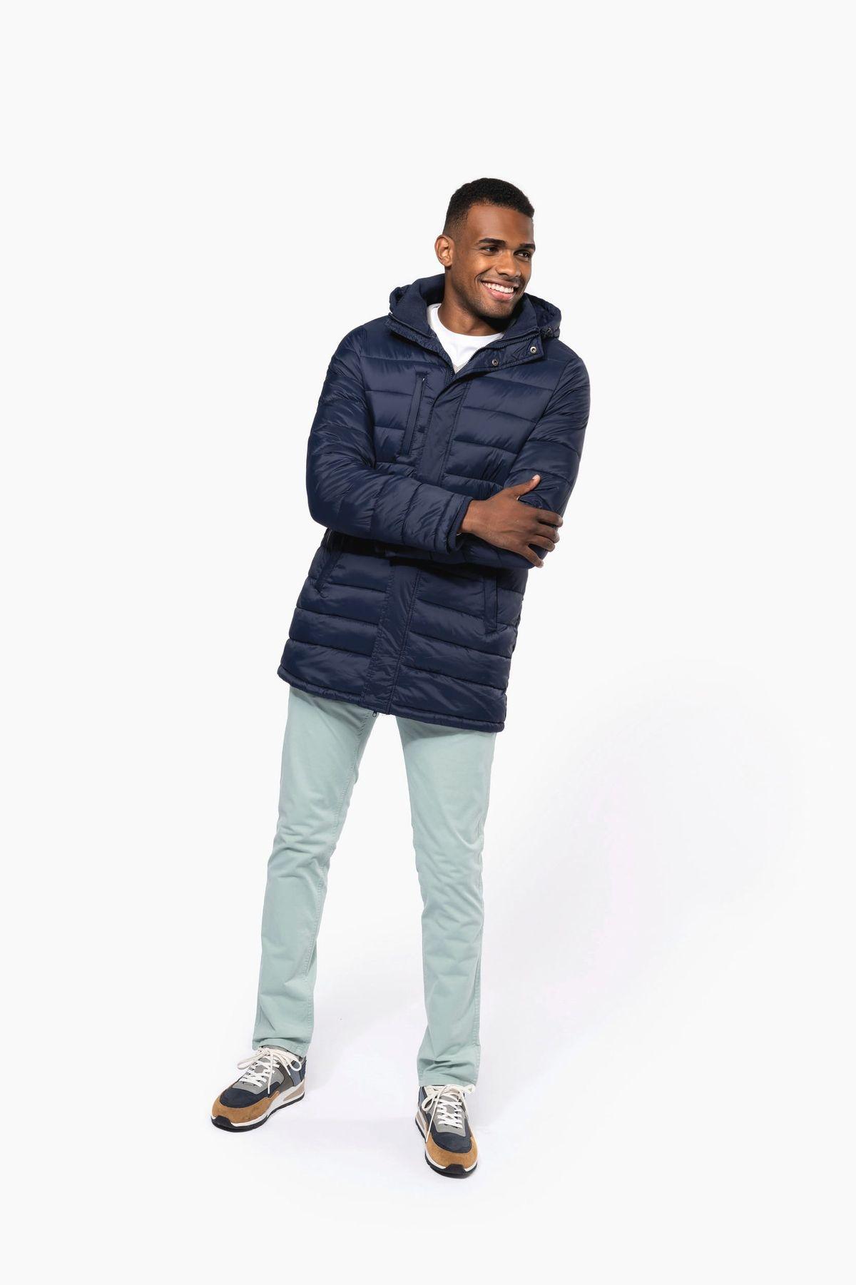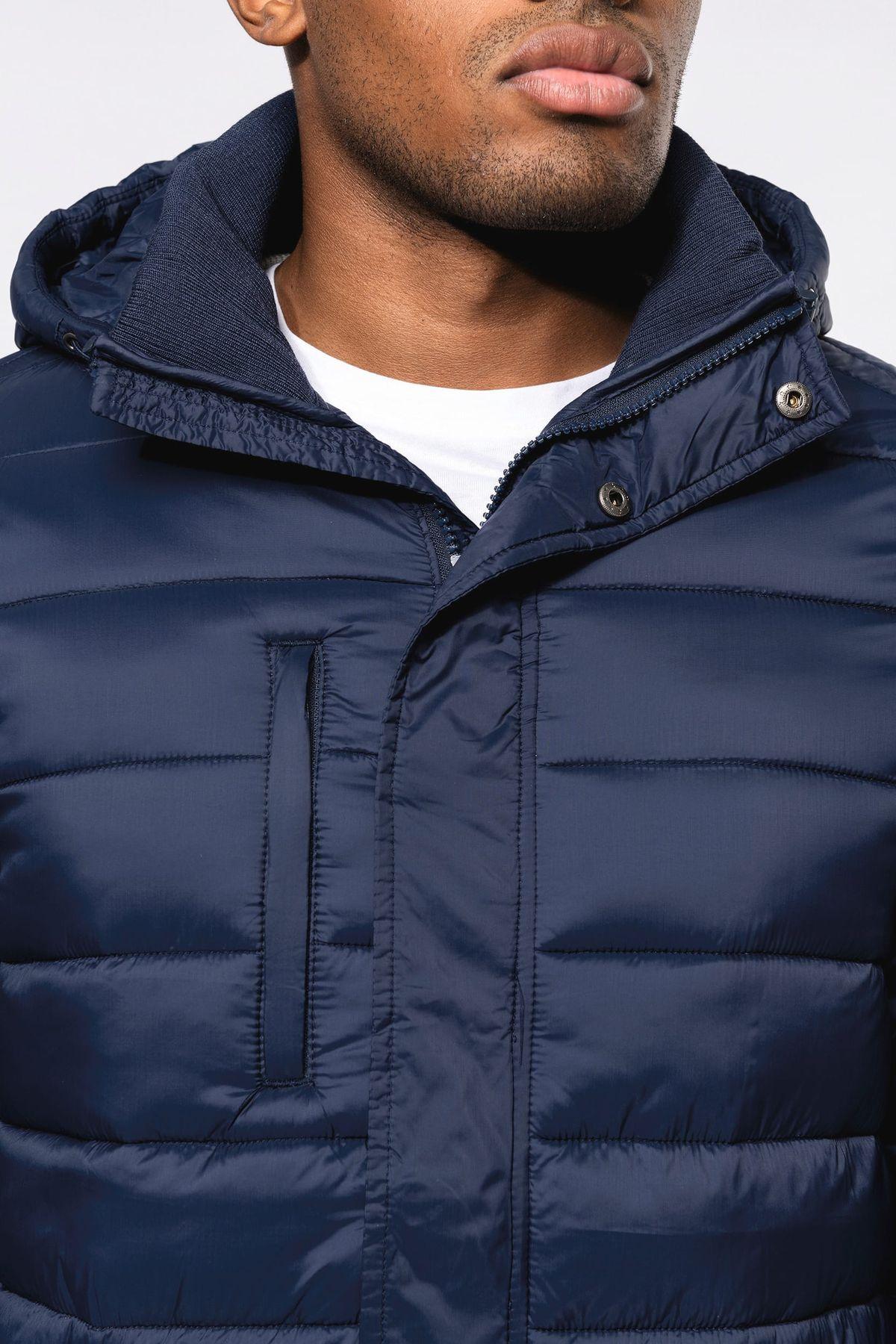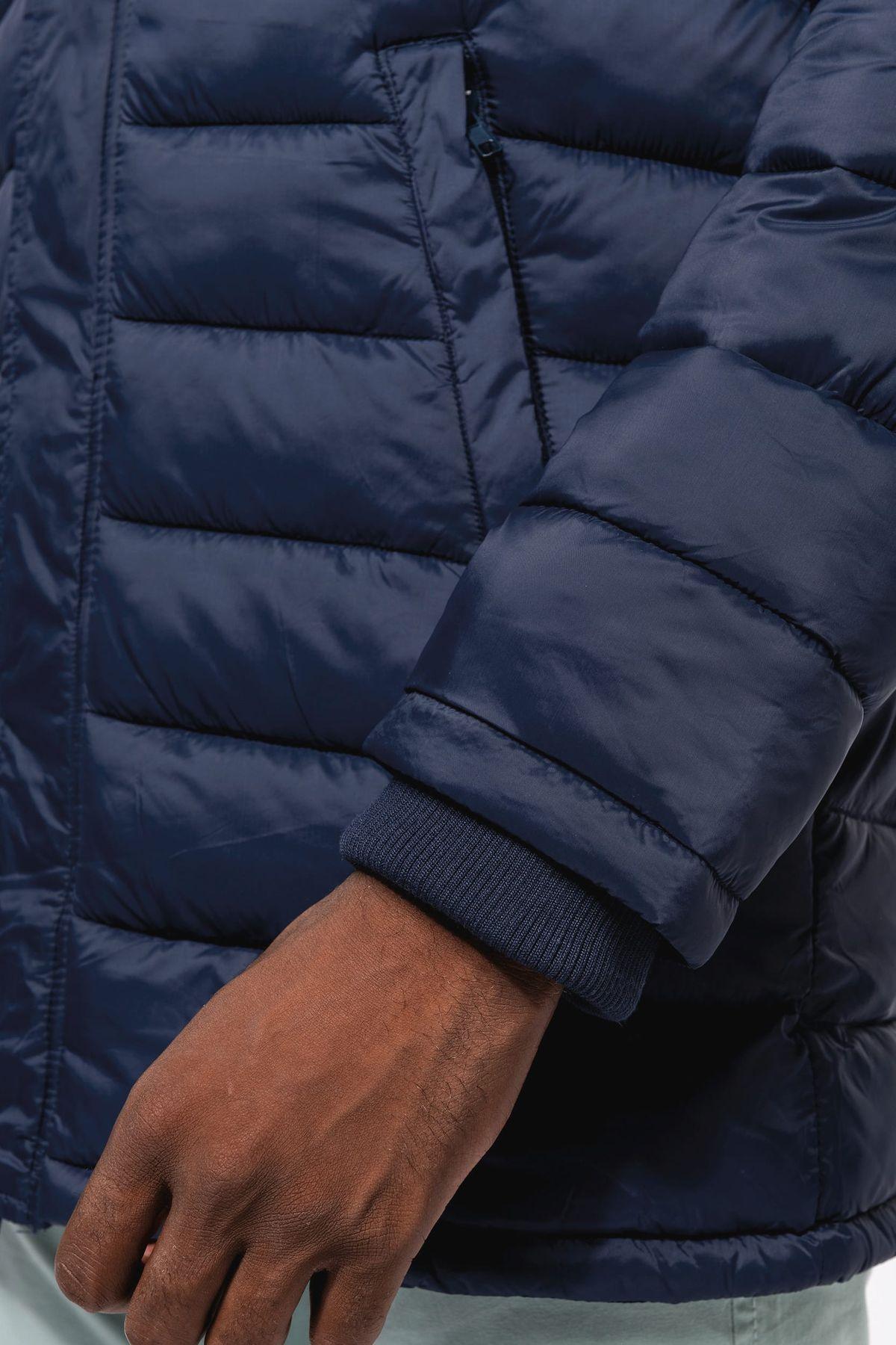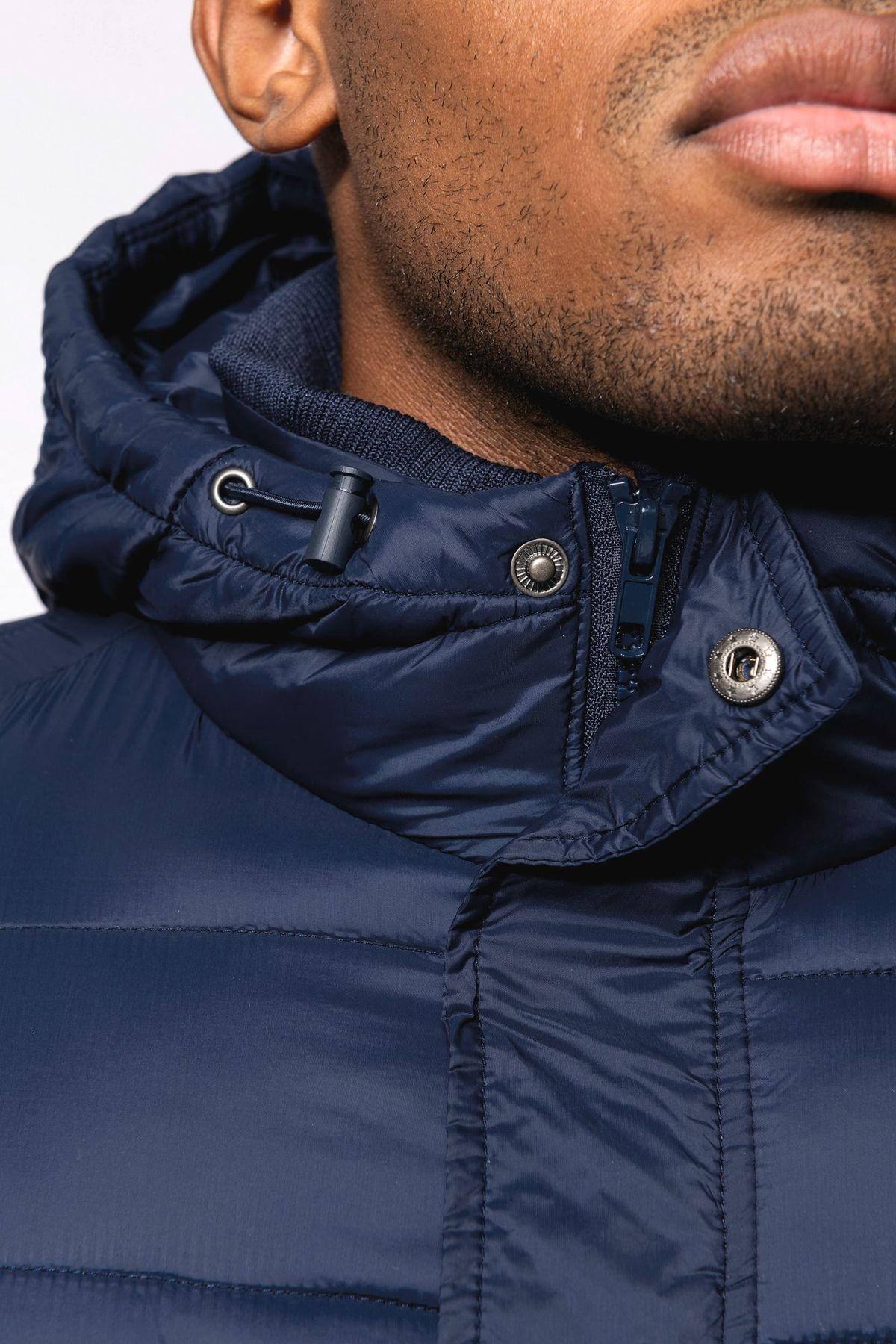 100% polyamide. Garniture intérieure polyester. Chaude et ultralégère. 2 poches devant et 1 poche poitrine zippées et passepoilées. Fermeture zippée avec double curseur cachée par patte et boutons pression. Intérieur col et poignets en bord-côte. Intérieur capuche et corps contrasté : Convoy Grey pour Black. Intérieur capuche et corps ton sur ton : Navy pour Navy. Garnissage injecté : le grammage peut varier selon les zones du vêtement. Le poids total est indicatif.