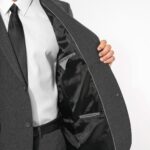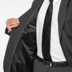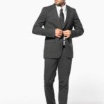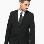 64% polyester / 34% viscose / 2% élasthanne. Doublure 100% polyester taffetas. Veste 2 boutons. 2 poches passepoilées devant avec rabat. 1 poche poitrine. 2 poches intérieures boutonnées et 1 poche téléphone. Bas de manches avec 4 boutons. 2 fentes d’aisance au dos. 1 zip invisible côté coeur pour accès personnalisation.