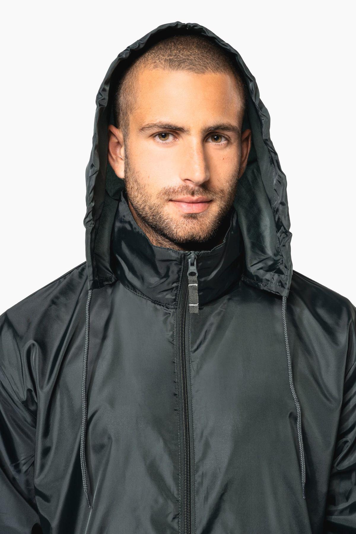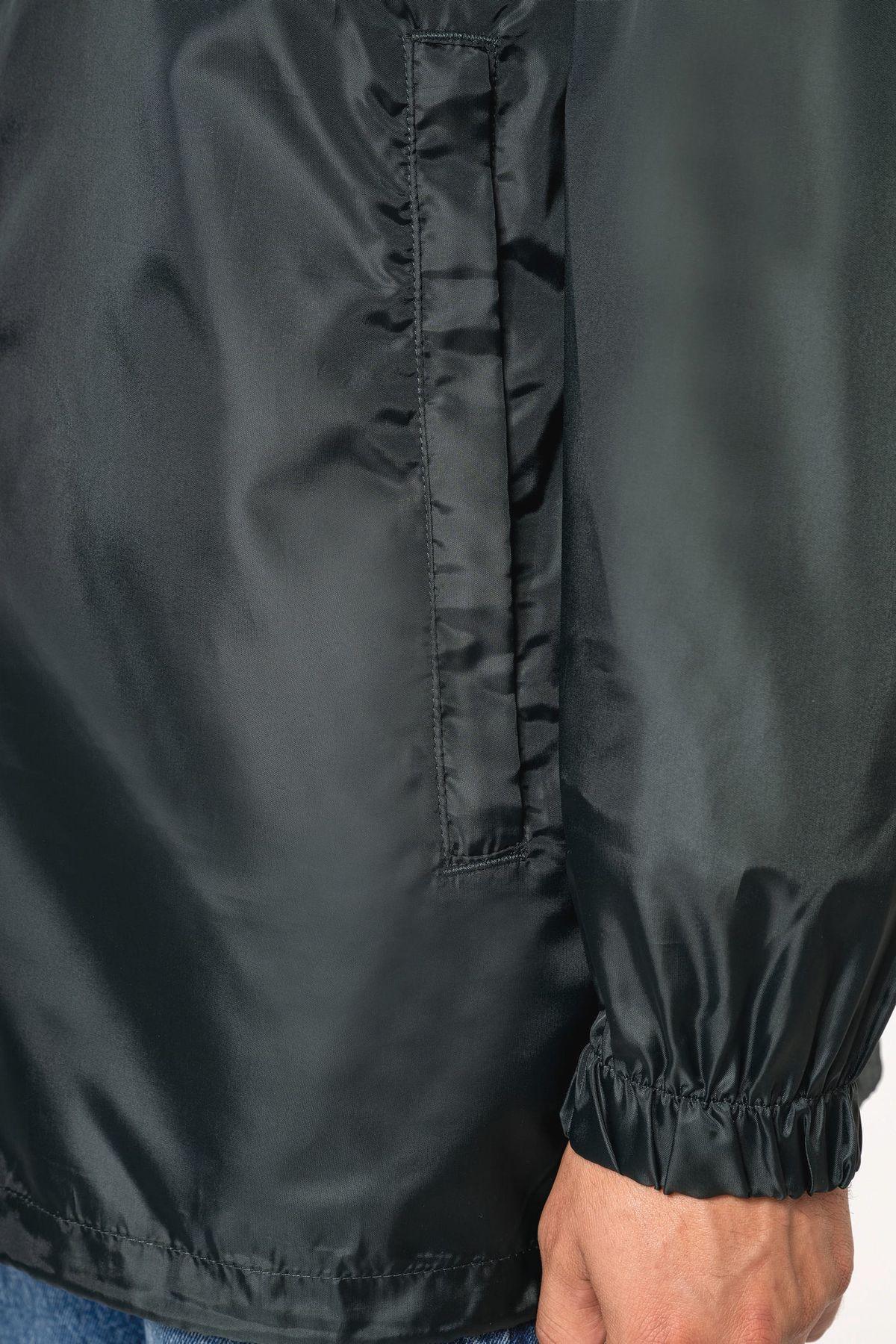 100% polyester. Capuche dans le col avec patte auto-agrippante. 2 poches zippées devant. Cordon de serrage au bas. Bas de manches élastiqués. Repliable dans sa poche sur la base du système K-WAY®. Fermeture zippée ton sur ton.