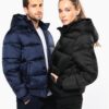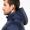 100% polyamide recyclé ripstop 380T. Tissu déperlant. Garniture intérieure 100% polyester recyclé. Doublure 100% polyamide recyclé. Coupe straight. 2 poches côtés zippées et passepoilées. 1 poche plaquée intérieure avec bande auto-agrippante. Fermeture zippée devant. Col montant avec capuche 3 parties doublée, matelassée et ajustable à l’aide d’un stoppeur. Bord-côtes au bas de manches et de vêtement. Zip invisible intérieur côté cœur et au bas du vêtement pour accès personnalisation. Garnissage injecté : le grammage peut varier selon les zones du vêtement. Le poids total est indicatif.
