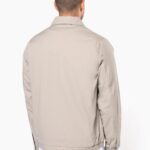 100% coton. Tissu canvas. Col chemise. 2 poches zippées et passepoilées devant. 1 poche intérieure. Bas de vêtement élastiqué sur les côtés. Poignets pressionnés. Intérieur : corps doublé en tartan popeline coton et manches en doublure taffetas polyester. Fermeture zippée métal. Zips invisible côté coeur et bas de vêtement pour accès personnalisation.