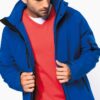 95% polyester / 5% élasthanne. Tissu contrecollé 3 couches respirant 3000 g/m² /24h et imperméable 8000 mm. Extérieur : 95% polyester / 5% élasthanne. Intermédiaire : membrane respirante. Couche intérieure : micropolaire. Doublure matelassée 100% polyester. Devant : 4 poches zippées (2 latérales, 1 sur la manche, 1 poitrine côté droit). 2 poches intérieures avec bouton pression. Capuche amovible 3 panneaux doublée et matelassée, réglable avec stoppeurs. Bas de manche réglable avec bande auto-agrippante. 1 zip côté cœur et 1 zip au bas du vêtement pour accès personnalisation.