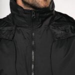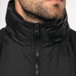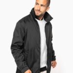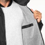 100% polyamide 210 T avec enduction acrylique. Fermeture zippée. 1 poche intérieure + 2 poches devant. Cordon élastique au bas du vêtement avec stoppeurs. Capuche dans le col avec cordon élastique. Doublure jersey gris chiné 100% polyester. Zip intérieur pour personnalisation.