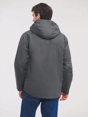 Extérieur : 100% polyester enduction PVC. Fermeture zippée et patte de boutonnage à pressions. Patte de serrage bas de manche auto-agrippante. Capuche sans col, fermeture zippée avec cordon élastique. 2 poches intérieures + 1 poche pour téléphone portable. Zip intérieur pour personnalisation. Doublure corps : 100% polyester et ouate 100% polyester. Manches amovibles. 2 poches latérales passepoilées.