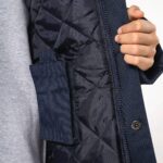 Extérieur : 100% polyester Oxford. Doublure : 100% polyester matelassé. Fermeture zippée et patte de boutonnage à pressions et auto-agrippante. 2 poches latérales zippées. 2 poches intérieures dont 1 pour téléphone portable. Capuche dans le col doublé polaire. Zip intérieur pour personnalisation.