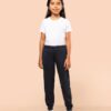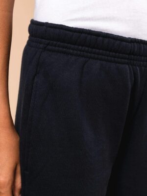 80% coton / 20% polyester. Molleton gratté 2 fils. Coupe droite. 2 poches côtés. Taille élastiquée avec cordon de serrage plat. Bord côtes au bas de jambes.