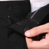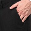 64% polyester / 34% viscose / 2% élasthanne. Pantalon coupe ajustée. 2 poches italiennes devant et 2 poches arrière passepoilées et boutonnées. Fermeture braguette zippée avec crochet et bouton sous patte. Ceinture avec passants. 1/2 jambe devant doublée. Bas de pantalon “non fini” permettant de faire un ourlet parfaitement adapté.