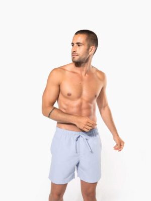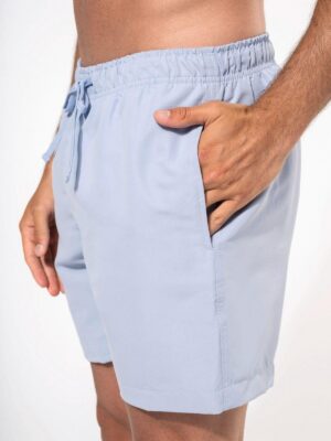 100% polyester recyclé post-consumer. Tissu sergé. Coupe ajustée. 2 poches côtés ouvertes avec sac de poche en maille filet. Ceinture élastiquée avec cordon de serrage plat. Slip intérieur en maille filet avec finition biais élastiqué pour plus de confort. Poche arrière passepoilée avec fermeture bande auto-agrippante. Double aiguille et point d’arrêt à l’entrejambe et sur les côtés.