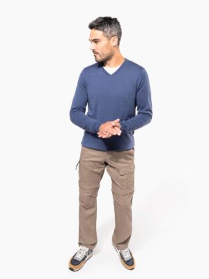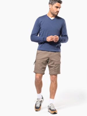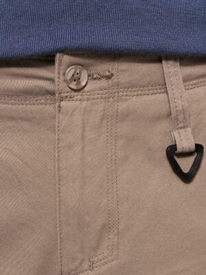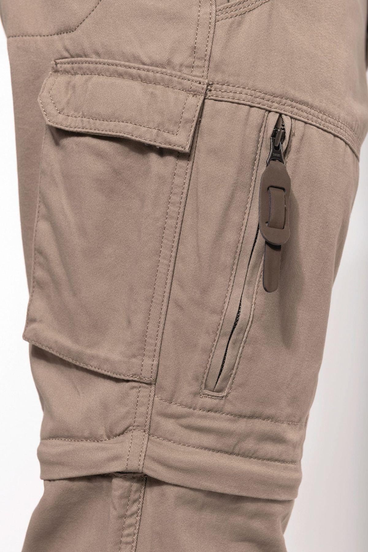 100% coton sergé. Lavage aux enzymes. Fermeture zippée avec bouton pression. 4 poches avant et 3 arrière. Bas de pantalon détachable par zip pour une version bermuda. Anneau plastique pour mousqueton à la ceinture. Ce produit a subi un traitement spécial et présente un aspect volontairement vieilli. Ce procédé de fabrication implique des variations de couleurs d’un produit à l’autre et rend chaque pièce unique.