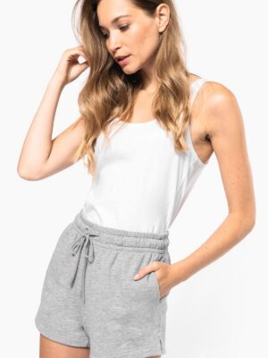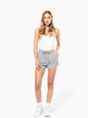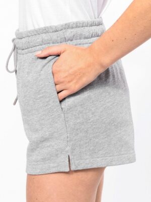 80% coton biologique / 20% polyester recyclé. Pour les coloris chinés : 75% coton biologique / 25% polyester recyclé. Molleton en French Terry 3 fils LST (Low skrinkage Terry). Lavage aux enzymes. 2 poches ouvertes côtés. Taille élastiquée avec cordon de serrage rond avec embout caoutchouc. Fentes d’aisance latérales avec bande de finition jersey. Double aiguille au bas de vêtement. Pas d’étiquette de marque, uniquement une puce de taille pour faciliter la personnalisation.