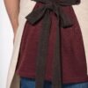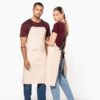 100% coton biologique. Tissu canvas très résistant. Sangles d’attache en coton chevron croisées dans le dos et passant dans des oeillets métal à la taille. Poche devant L 30 cm – H 20 cm. Dimensions: H 90 cm – L 76 cm. Ce produit a subi un traitement spécial et présente un aspect volontairement vieilli. Ce procédé de fabrication implique des variations de couleurs d’un produit à l’autre et rend chaque pièce unique.
