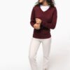 50% coton / 50% acrylique (jauge 12). Coupe cintrée. Bord-côte du col double épaisseur. Bande de propreté à l’encolure.