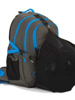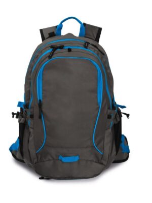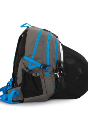 100 % polyester. Sac à dos style urbain, adapté aux loisirs. Grand compartiment principal avec un espace de rangement pour ordinateur jusqu’à 15”. Large poche frontale. Compartiment intermédiaire. Filet porte casque amovible qui se replie dans la poche zippée prévue à cet effet sous le sac. Sangles de compression latérale et ceinture ventrale pour un meilleur maintien. Poches côté en filet élastique avec cordon de serrage. Bretelles ergonomiques et dos respirant.