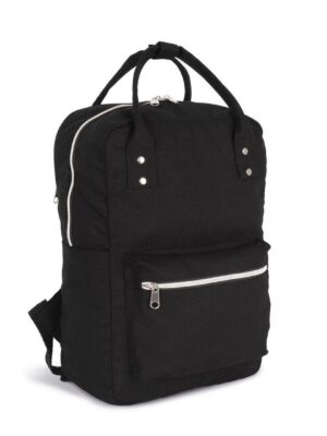 100% coton. Sac à dos en coton avec poignées sangles, afin de pouvoir être aussi utilisé comme sac à main. Ouverture principale supérieure et ouverture secondaire par fermetures zippées. Poche avant avec fermeture zippée. Poches latérales. Dos et bretelles matelassés.