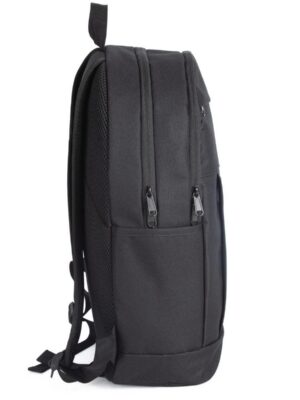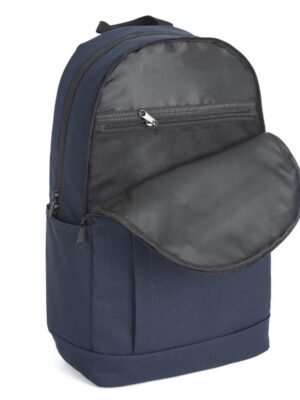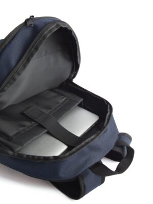 100% polyester. Sac à dos de travail avec compartiment interne pour ordinateur jusqu’à 15 pouces. Grand compartiment principal pour les documents. Poches frontales, l’une zippée, l’autre horizontale et l’autre verticale pour faciliter la personnalisation. Dos en filet confortable et respirant.