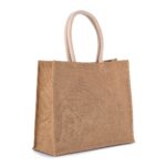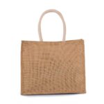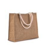 Sac plage / shopping en jute, anses en coton, fermeture avec bande auto agrippante.