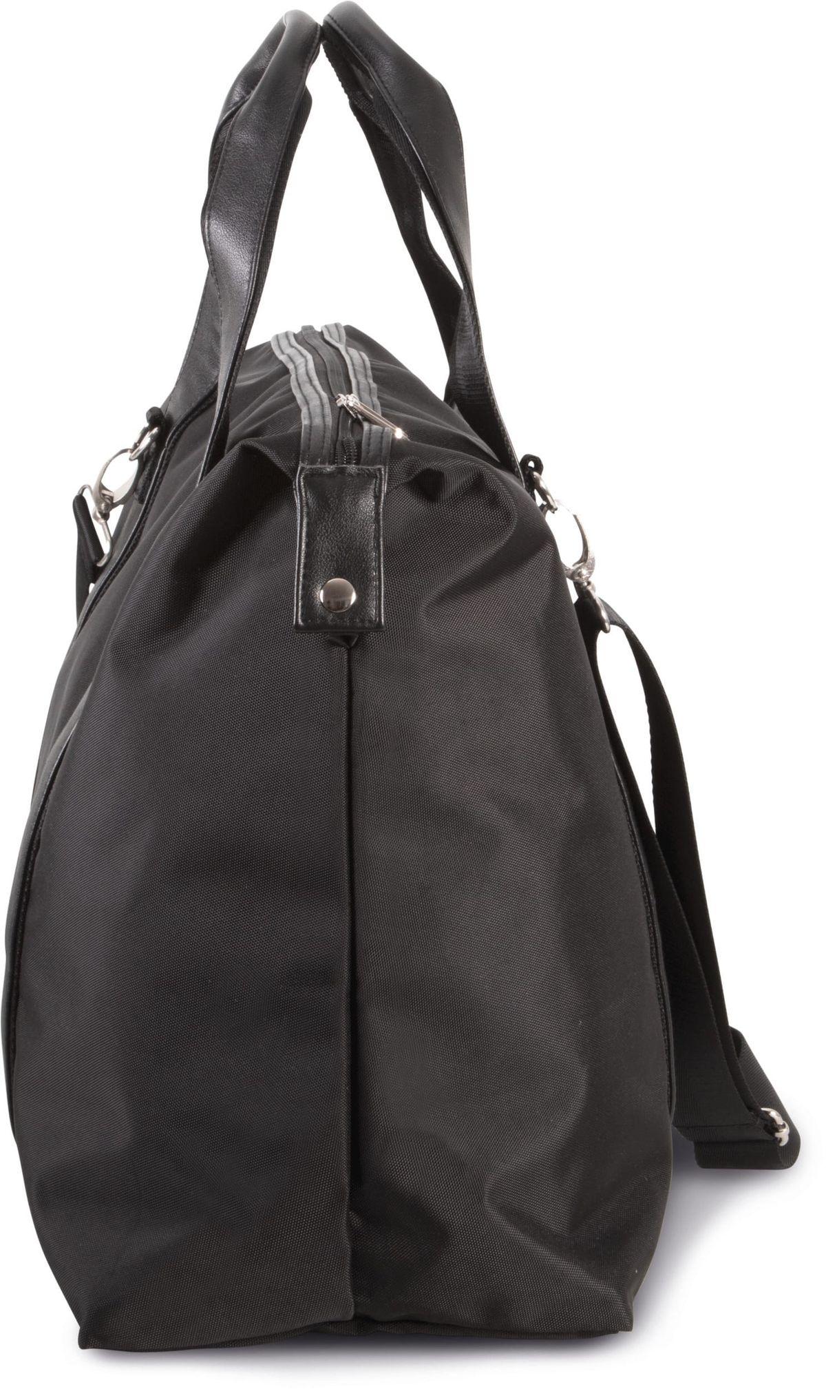 Sac fourre-tout de voyage en polyester 900D avec finition contrastée le long de la fermeture zippée. Doublure en polyester 210D. Poignées et bandoulière contrastées renforcées par sangle. Bandoulière amovible. Base avec pieds de stabilité.