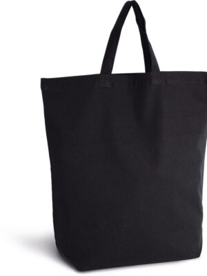 Sac shopping en coton à fond large avec soufflet, anses de 35 cm dans la même matière et couleur.