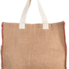 Sac shopping non-laminé avec coutures contrastées en fil de jute sur les côtés. Poche intérieure en jute. Poignées en coton.