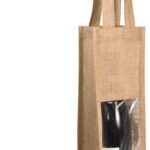 Sac porte-bouteille en toile de jute, avec 2 poignées et fenêtre transparente sur le devant. Conçu pour 1 bouteille.