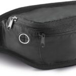 Sac de ceinture / banane en polyester ripstop 210D. Poche zippée devant, poche intérieure en matière filet, passant pour écouteurs.