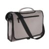 Porte-document en polyester 600D. Bandoulière ajustable, rabat avec poche frontale zippée et boucle de fermeture, porte stylo et porte-carte de visite.
