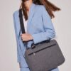 Sac porte-document / Ordinateur en polyester 600D. Compartiment matelassĂ© pour loger un ordinateur jusqu’Ă 13 pouces, poche devant zippĂ©e, poignĂ©es de couleur contrastĂ©e. Lanière d’Ă©paule amovible.