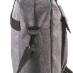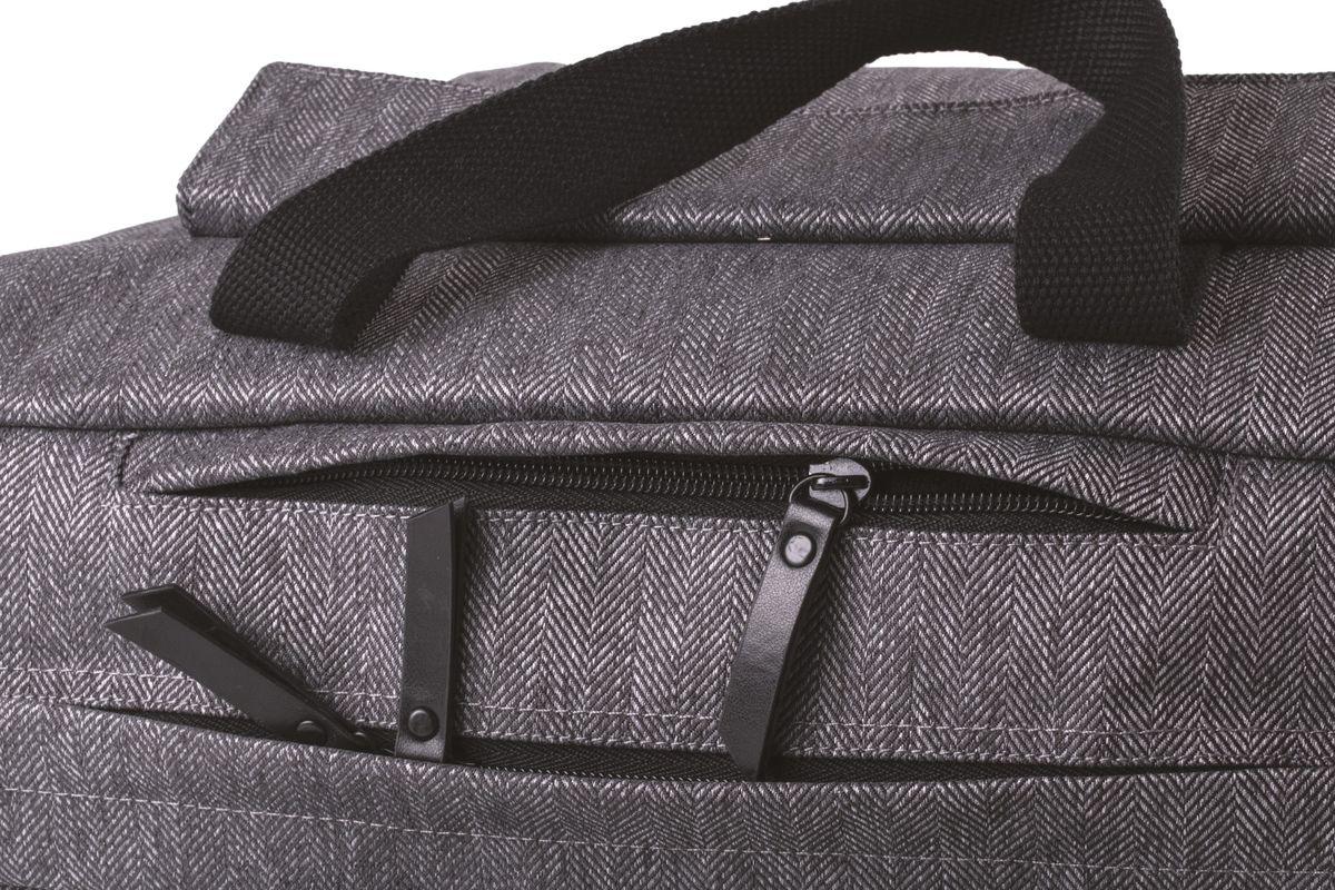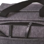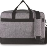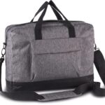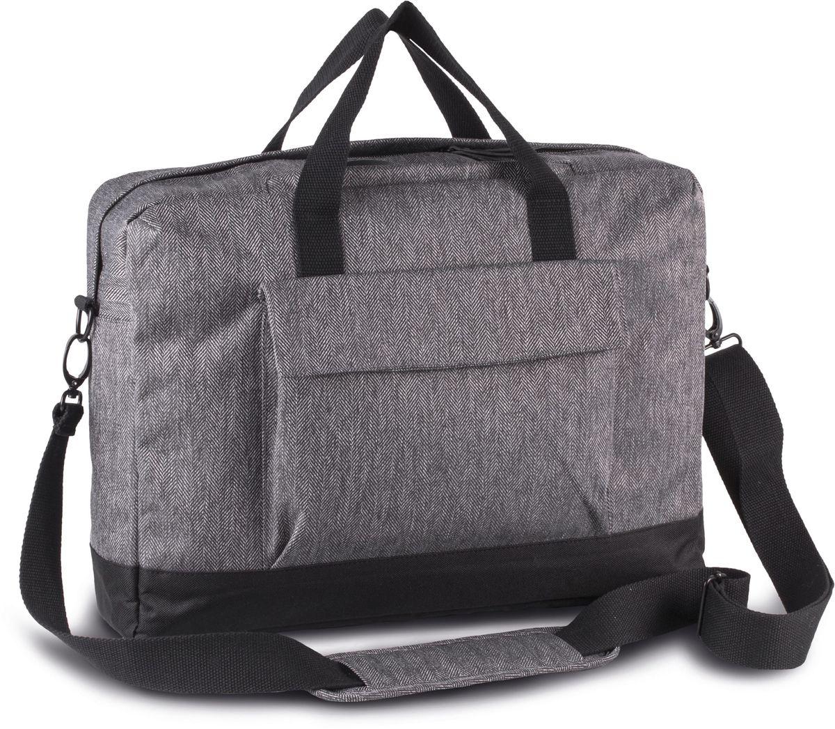 Sac porte-ordinateur en polyester, fond de sac contrasté en polyester 600D. Compartiment matelassé pour loger un ordinateur jusqu’à 15″, et poche zippée matelassée pour insérer une tablette. 2 poches intérieures, 1 poche zippée sur le haut du sac pour loger téléphone portable, 1 poche devant avec rabat contrasté et boutons pressions. Passant au dos pour fixation trolley, lanière d’épaule amovible.