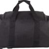 Sac de sport / sports co avec système trolley, de taille moyenne (55 cm), en polyester 600D. 1 poche côté zippée pour loger 1 paire de chaussures, grande ouverture avec large zip sur le dessus, porte-étiquette pour identification, poignées sangle renforcées avec lanières de 5 cm tout autour du sac.