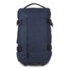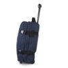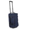 Sac trolley cabine en polyester 600D avec grande poche zippée à l’avant pour faciliter la personnalisation. Deux compartiments internes avec sangles de maintien. Système de trolley rétractable. Sangles de compression extérieures pour ajuster le volume. Base avec renforcement en relief et points d’arrêt sur les poignées.