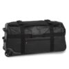 100% polyester / 100% PVC. Sac trolley grand format en chlorure de polyvinyle et polyester. Il est entièrement conçu en matériaux imperméables avec une fermeture glissière étanche. Pratique, il est composé d’1 poche range-chaussures sur le côté, d’1 poche frontale zippée, d’1 grande poche interne en filet pour accessoires avec fermeture zippée. Pour faciliter le transport, il est équipé de 2 sangles de compression, de poignées sur les 2 côtés. Robuste, ce sac a été pensé avec des renforts de protection sur les angles, 1 barre de protection sur le dos du trolley, 1 fond semi-rigide avec 1 poignée en plastique qui fait office de pied.