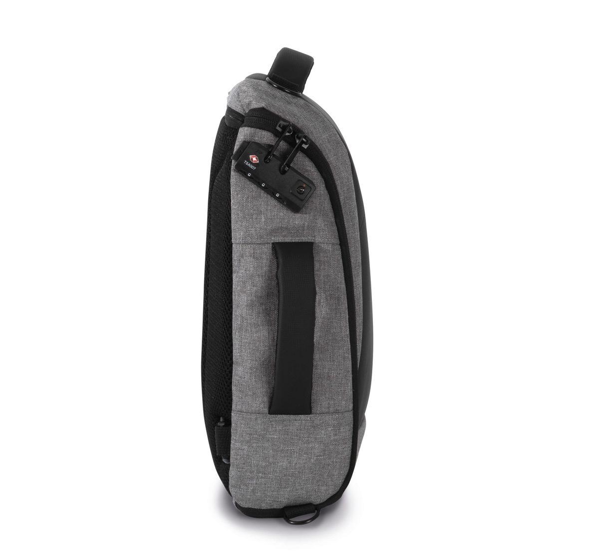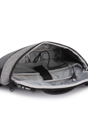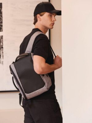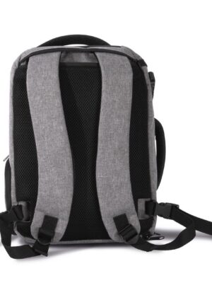 100% polyester recyclé. Petite version du KI0888 pour tablette de 13″. Fermeture zippée au dos avec système de verrouillage TSA. Poche zippée à accès rapide au dos. Bretelles et sangles de poitrine ajustables. 2 poches zippées sur les bretelles. 2 sangles d’attache sous le sac pour transporter pulls, vestes, etc. 2 poches sur les côtés. 1 poche côté avec port USB intégré et câble micro USB interne (fourni) permettant le branchement du Powerbank. 1 poche côté avec câble antivol spirale pour attacher le sac à un pied de table ou de chaise. 2 poches zippées en filet. 2 poches zippées détachables pour câbles ou accessoires. 2 poches intérieures dont 1 pour les bouteilles/gourdes et 1 pour stocker la powerbank.