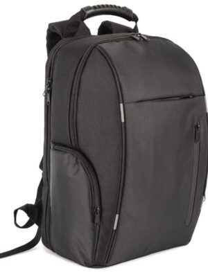 100% polyester. Sac à dos de travail avec matériaux contrastés. Grand compartiment principal pour les documents avec grande poche filet zippée. Compartiment pour ordinateur (jusqu’à 15 pouces) et tablette. Double poche frontale zippée. Deux poches latérales symétriques zippées. Bande adhésive au dos pour permettre de glisser le sac à dos dans les poignées d’un trolley et faciliter son transport. Dos et bretelles matelassés et respirants.
