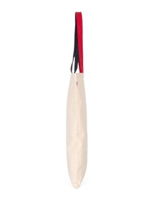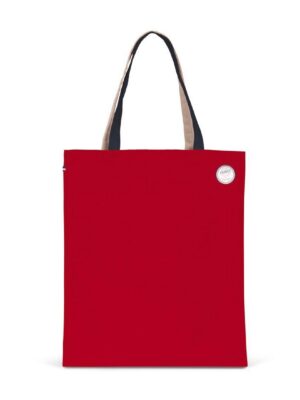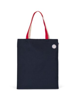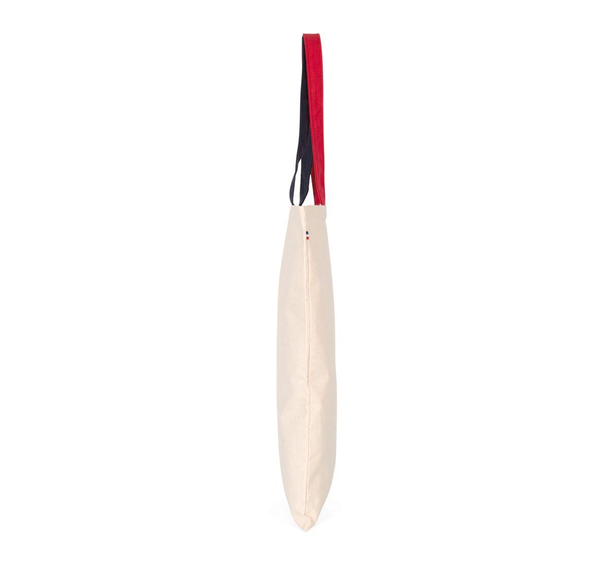 100% coton. Ce sac est conçu à partir de toile de coton. Fabriqué en France, ce produit est labellisé “Origine France Garantie”, produit en Bretagne. Une étiquette tissée drapeau français est cousue sur le côté du sac. Anses tissées de 2,5 cm de large et de 50 cm de long sont de couleurs contrastées.